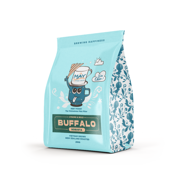 Not just about exceptional flavour and a strong caffeine punch; Buffalo is also a nod to tradition and the hardworking water buffalo that have worked alongside Vietnamese farmers in the rice fields for centuries. And just like the strong and powerful Buffalo, this coffee will keep you energised to ensure you stay on top of your daily grind.