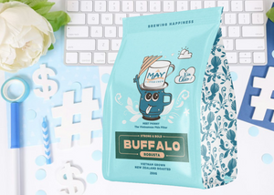 100% pure robusta, Buffalo is a bold, powerful yet smooth, clean coffee that effortlessly complements milk. Giving you that double shot of caffeine without breaking the bank.